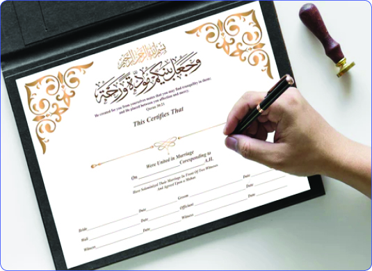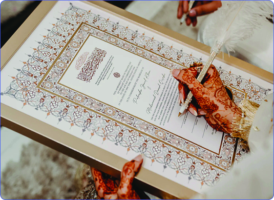 If the conditions are met and a mahr (dowry) and contract are agreed upon, an Islamic marriage ceremony, or wedding, can take place. The marital contract is also often signed by the bride. The consent of the bride is mandatory. The Islamic marriage is then declared publicly by a responsible person after delivering a sermon to counsel and guide the couple. It is not required, though customary, that the person marrying the couple should be religiously well-founded in knowledge. The bridegroom can deliver the sermon himself in the presence of representatives of both sides if he is religiously educated, as the story goes about Imam Muhammad bin Ali around 829 AD. It is typically followed by a celebratory reception in line with the couple's or local customs, which could either last a couple of hours or precede the wedding and conclude several days after the ceremony.